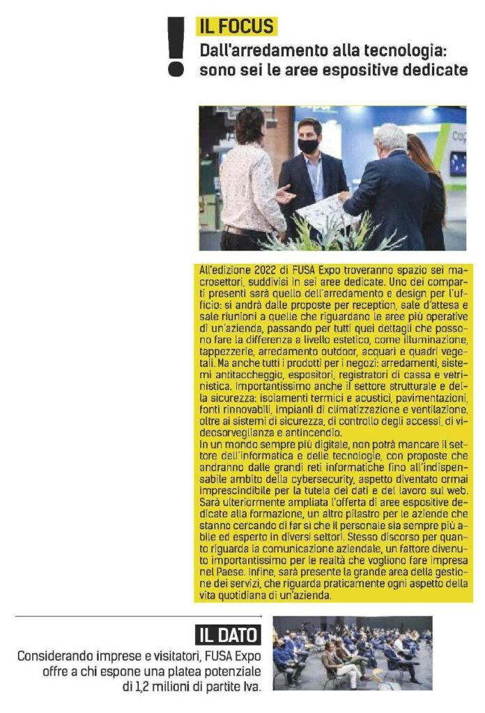 Considerando imprese e visitatori, FUSA Expo offre a chi espone una platea potenziale di 1,2 milioni di partite Iva.