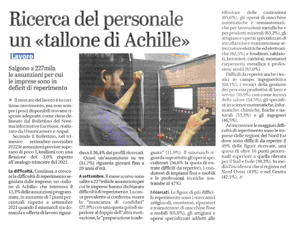 Ricerca del personale un “tallone di Achille”